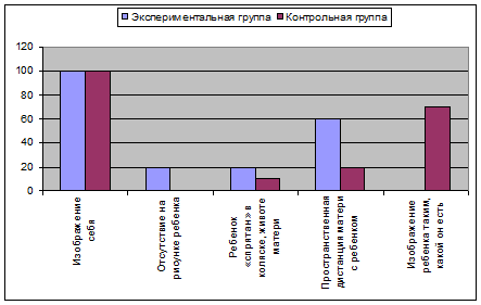 Данная методика Г.Г. Филипповой предназначена для диагностики отношения к беременности и готовности к материнству. По рисуночному тесту учитывалось наличие на рисунке матери и ребенка, содержание образа ребенка и его возраст, наличие совместной деятельности матери и ребенка, психологическая дистанция, а также характеристика общего состояния (благополучное состояние, неуверенность в себе, тревожность) по формальным признакам рисунка, принятым в психодиагностике (качество линии, расположение на листе, детали рисунков и т.д.) (52).