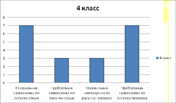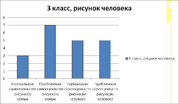 Рисунок человека показал, что 66% детей имеют низкую самооценку в связи с отсутствием теплых контактов с родителями, проблем с учителями и общей подавленностью.