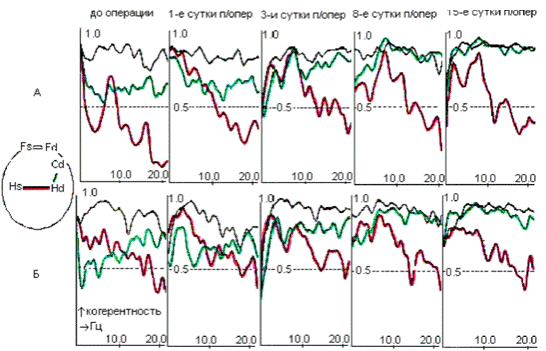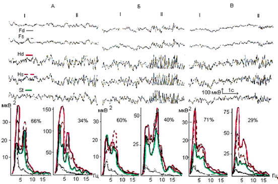 сочетанного стволово-орбитофронтального (А, Б) и стволово-гиппокампального (А,