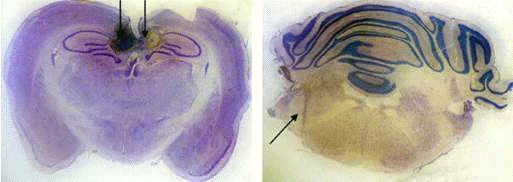 участок поля СА1 гиппокампа повреждался силой тока 0.5 мА и длительностью 20