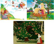 Печка ей не сказала. Побежала девочка дальше - стоит яблоня. Яблоня, яблоня, скажи, куда гуси-лебеди полетели? -