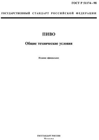 ГОСТ Р 51174-98 "Пиво. Общие технические
