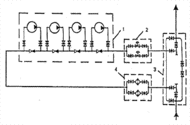 Нефть, поступающая из магистрального трубопровода, сначала проходит через фильтры грязеуловители, затем приобретает в насосах энергию, необходимую для дальнейшей перекачки, и после регулирования давления на площадке 2 закачивается в следующий участок магистрального нефтепровода.