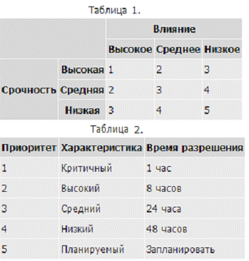 Для персонала поддержки необходимо разработать четкие инструкции определения приоритета инцидента на основе срочности и влияния на бизнес. Необходимо отметить, что приоритет инцидента может меняться в зависимости от изменения окружающих условий и требований бизнеса.