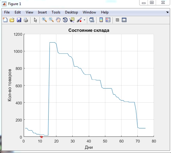 Q1_new = zeros( 1,Days(end) ); % количество товара на складе