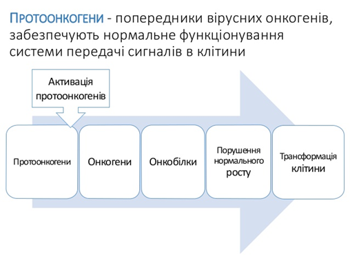Суть вірусіндукованого канцерогенезу зводиться до того, що онкогенні віруси вносять в інфіковану клітину свій геном, до складу якого входить трансформуючий ген – вірусний онкоген. Продукт його діяльності (онкобілок) розпочинає трансформацію клітини й підтримує її в трансформованому вигляді.