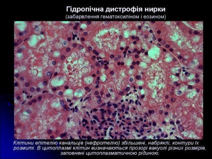 Дистрофії. Білкові паренхіматозні дистрофії. Гідропічна дистрофія. Визначення. Механізм розвитку. Морфологічна характеристика. Наслідки.