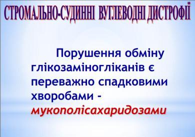 Механізм розвитку: Стромально судинні вуглеводні дистрофії часто пов’язані з порушенням балансу глікопротеїдів і глікозаміногліканів. Стромально-судинну дистрофію, яка пов’язана з порушенням обміну глікопротеїдів, називають ослизненням тканин.
