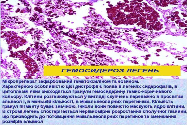Дистрофії. Змішані дистрофії. Порушення обміну гемосидерину. Визначення. Механізм розвитку. Морфологічна характеристика.