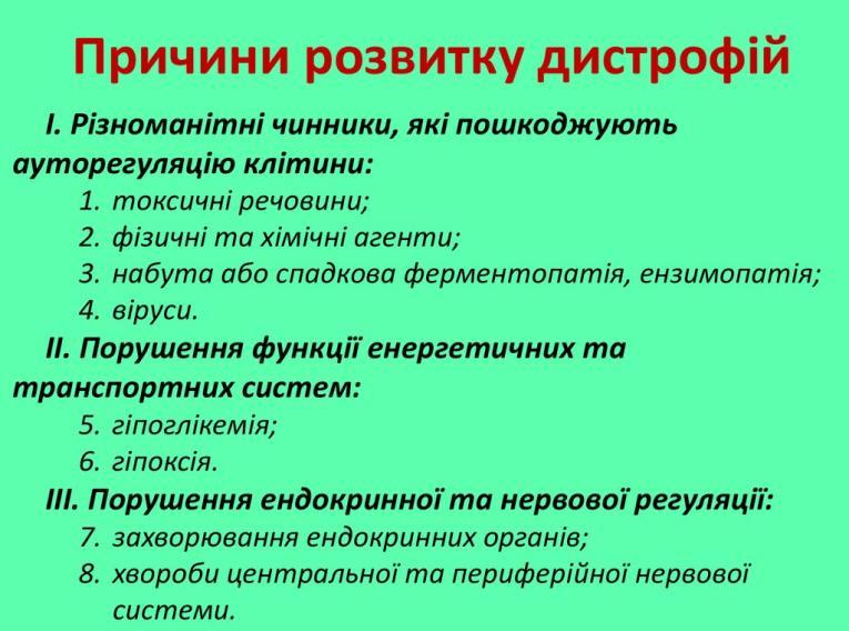 Дистрофії. Змішані дистрофії. Визначення, причини, класифікація. Механізм розвитку