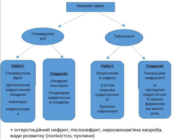Етіологія: інтоксикації хім. речовинами та токсинами, солі важких металів, кислоти, сульфаніламіди; інфекційні хв. (холера, черевний тиф, дифтерія)