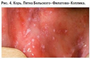 Енантема-білі плями Більшовського-Філатова-Копліка на слизовій щоки