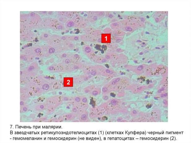 Малярійна гепатоспленомегалія(макрофаги фагоцитують гемомеланін)