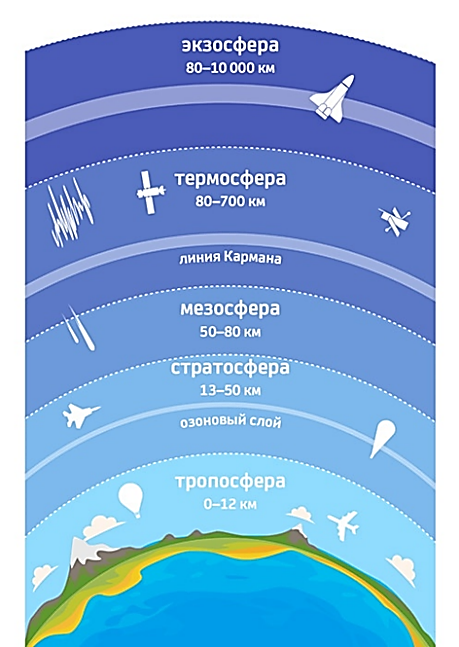 Атмосфера имеет четко выраженное слоистое строение.