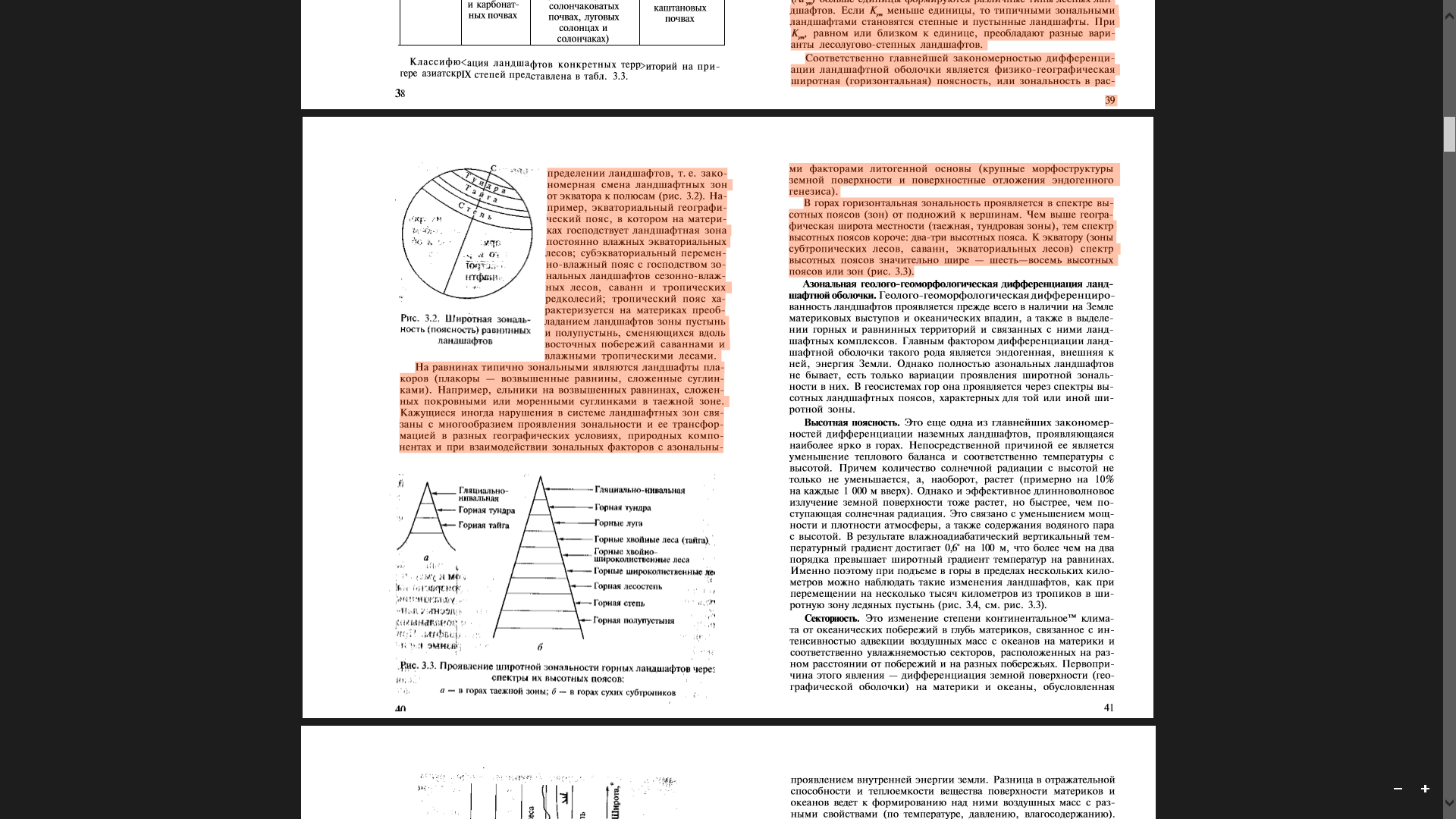 В горах горизонтальная зональность проявляется в спектре высотных поясов (зон) от подножий к вершинам. Чем выше географическая широта местности (таежная, тундровая зоны), тем спектр высотных поясов короче: два-три высотных пояса. К экватору (зоны субтропических лесов, саванн, экваториальных лесов) спектр высотных поясов значительно шире — шесть—восемь высотных поясов или зон (рис. 3.3).