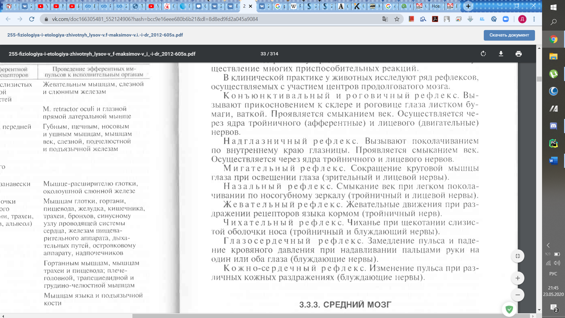 ряд рефлексов.