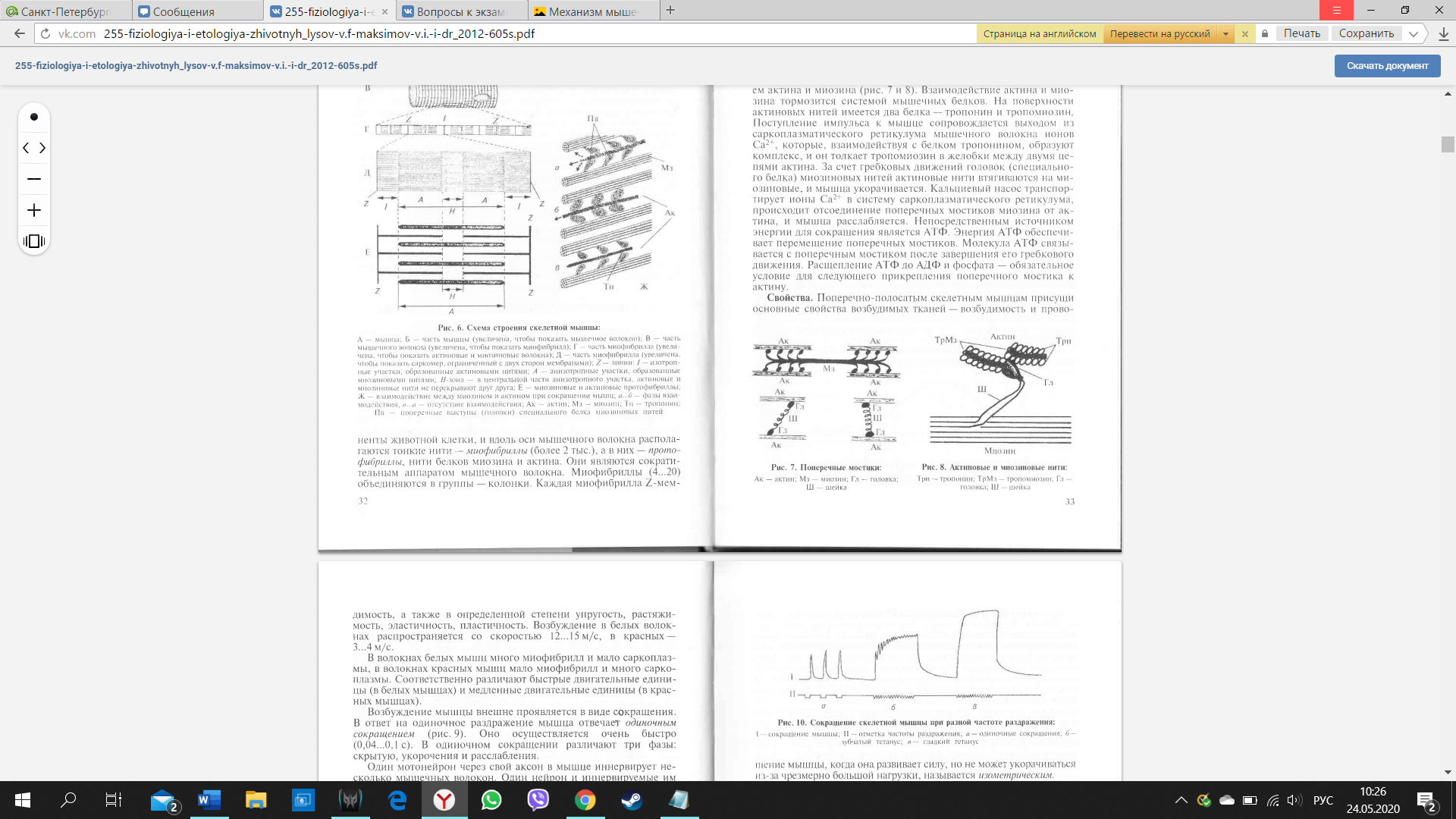Поступление импульса к мышце сопровождается выходом из саркоплазматического ретикулума мышечного волокна ионов Са2+, которые, взаимодействуя с белком тропонином, образуют комплекс, и он толкает тропомиозин в желобки между двумя цепями актина. За счет гребковых движений головок (специального белка) миозиновых нитей актиновые нити втягиваются на миозиновые, и мышца укорачивается. Кальциевый насос транспортирует ионы Са2+ в систему саркоплазматического ретикулума, происходит отсоединение поперечных мостиков миозина от актина, и мышца расслабляется.