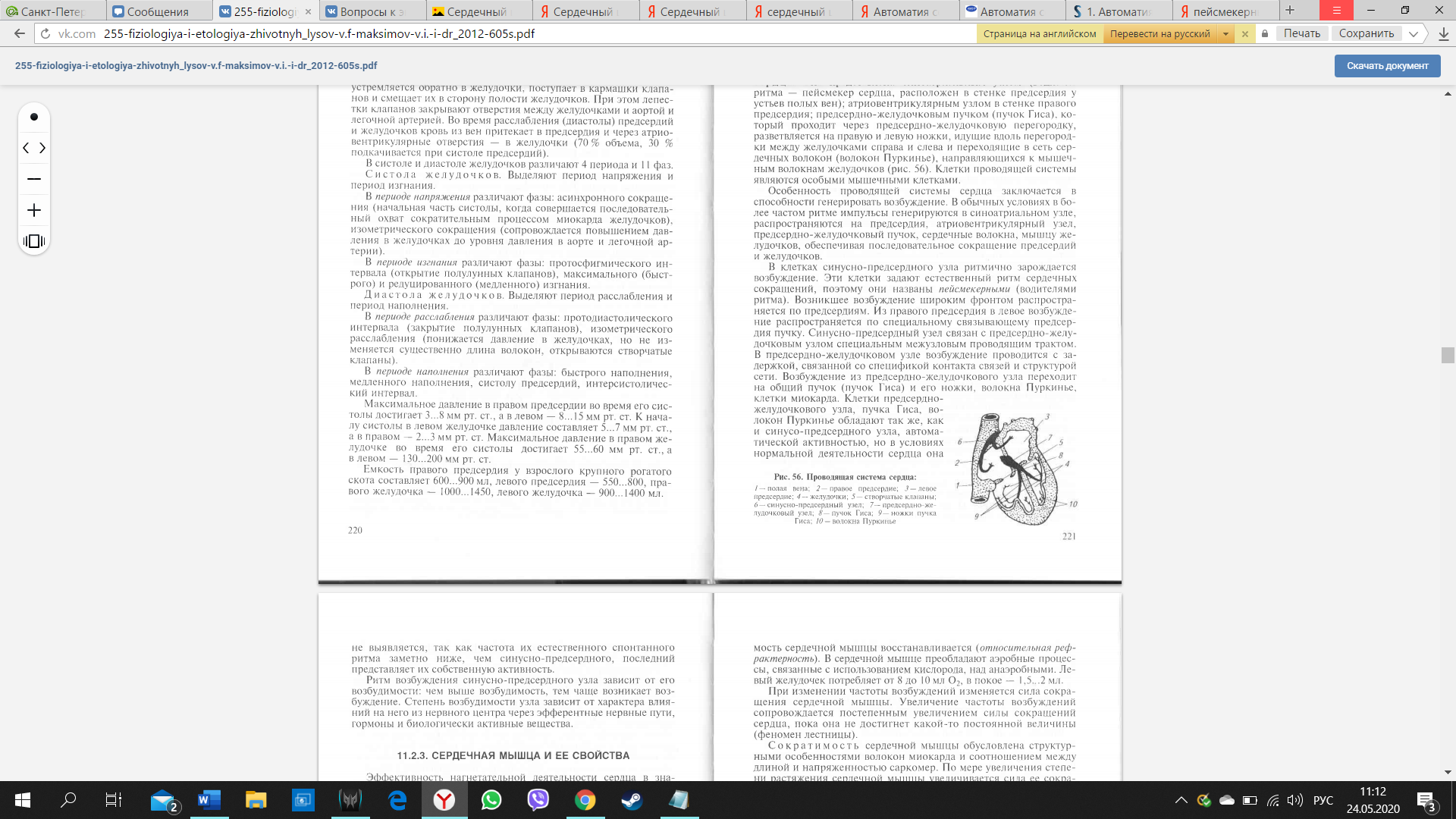 ритма). Возникшее возбуждение широким фронтом распространяется по предсердиям. Из правого предсердия в левое возбуждение распространяется по специальиому связывающему предсердия пучку. Синусно-предсердный узел связан с предсердно-желудочковым узлом специальным межузловым проводящим трактом. В предсердно-желудочковом узле возбуждение проводится с задержкой, связанной со спецификой контакта связей и структурой сети. Возбуждение из предсердно-желулочкового узла переходит на общий пучок (пучок Гиса) и его ножки, волокна Пуркинье, клетки миокарда. Клетки предсердно-желудочкового узла, пучка Гиса, волокон Пуркинье обладают так же, как и синусо-предсердного узла, автоматической активностью, но в условиях нормальной деятельности сердца она не выявляется, так как частота их естественного спонтанного ритма заметно ниже, чем синусно-предсердного, последний представляет их собственную активность.