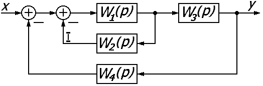 Задача № 1. Определить W(p) передаточную функцию замкнутой САУ по представленной структурной схеме: