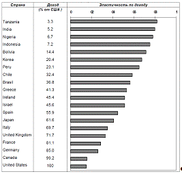 низким уровнем дохода, таких как Танзания и Индия, эластичность спроса по
