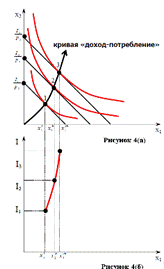 Кривая Энгеля строится путём перенесения оптимальных значений с верхнего графика на нижний.