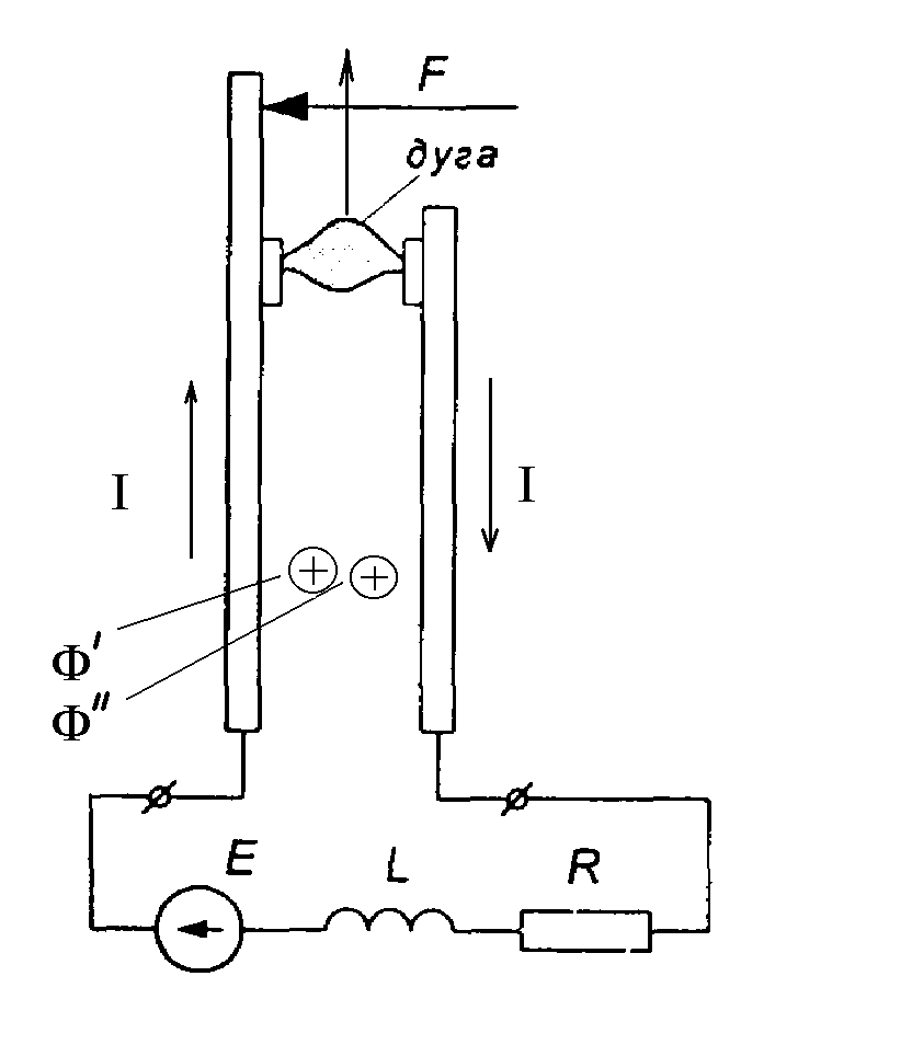 Направление потоков Ф/ и Ф// Определяем по правилу Буравчика. Электрическую дугу можно рассмотреть как проводник в магнитном поле.
