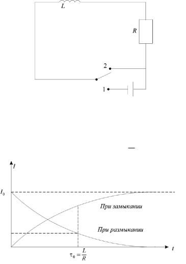 Рисунок 5.4 − При замыкании цепи и размыкании ток нарастает и убывает постепенно, если в цепи есть индуктивность L