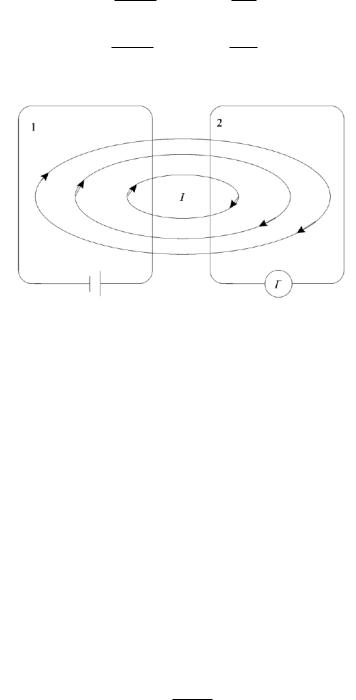Рисунок 5.6 - Если вблизи цепи 1 с изменяющимся током I1 расположен контур 2, то в нем находится ЭДС индукции