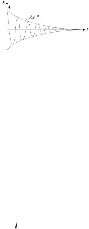 График затухающего колебания представлен на рис. 7.1. Амплитуда такого колебания убывает по закону A0∙exp(−β∙t).