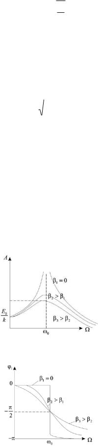 На рис. 7.2 и 7.3 приведены зависимости амплитуды А и фазы φ1 от частоты Ω внешней силы (резонансные кривые).
