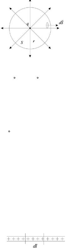 Окружим точечный заряд q воображаемой сферой радиуса r. Найдём общий поток ФЕ через эту сферу S, (см. рис. П1.1).