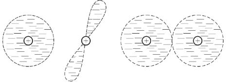 Рисунок 2.1 − В неполярных диэлектриках есть центр симметрии. В отсутствии электрического поля центры тяжести положительных и отрицательных зарядов