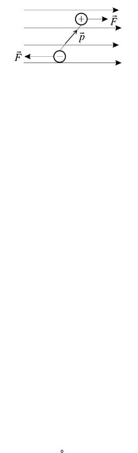 Вэлектрическом поле Е дипольный момент, вектор pe, стремится развернуться вдоль вектора Е.
