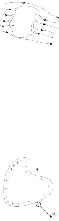 Проводник как бы разрывает часть силовых линий электростатического поля (рис. 3.4). Проводник, в целом, не заряжен. Плотность зарядов различна в разных точках поверхности.