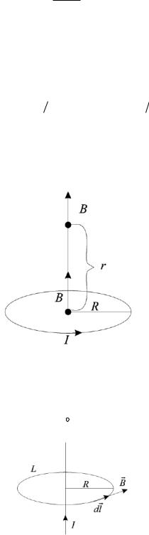 где I – сила тока в колечке; R – его радиус, и мы учли, что интеграл от dl дает длину всей окружности 2πR.