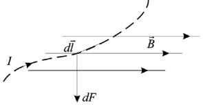 На любой элемент тока I∙dl в магнитном поле индукцией B действует сила