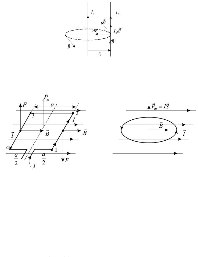 Рисунок 4.12 − Взаимодействие двух прямых параллельных проводников с токов