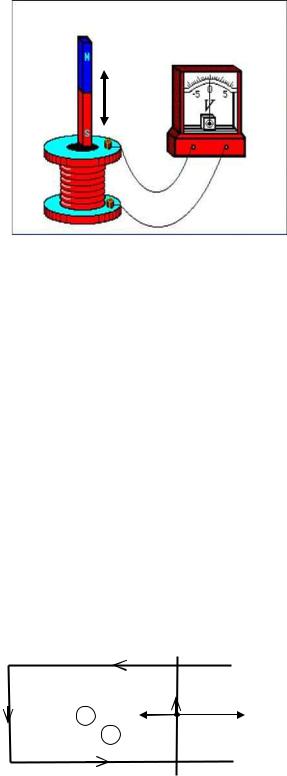 Схема одного из опытов Фарадея показана на рис. 6.1. При движении постоянного магнита внутрь катушки, замкнутой на гальванометр, в ней возникает индукционный ток. При движении в обратном направлении меняется и направление тока. Появление тока указывает на то, что в цепи начинает действовать электродвижущая сила, называемая ЭДС индукции εi .