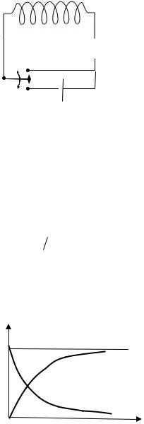 ствует против ЭДС источника ε и препятствует быстрому увеличению тока. Несложный расчет показывает, что сила тока в цепи I изменяется со временем по закону