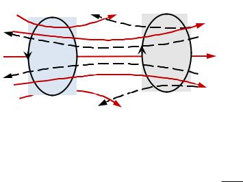 пропорциональный I1. Поле, создающее этот поток, изображено на рисунке сплошными линиями. При изменении тока I1 в контуре 2 индуцируется ЭДС