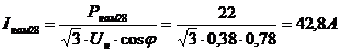- номинальное линейное напряжение сети