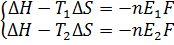 ЭДС изучаемой реакции - E1 и E2 - хотя бы при двух температурах Т1 и Т2, то,