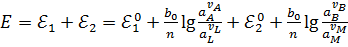 значение E или E0, т.е. только сумму электродных потенциалов и
