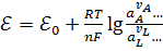 активности лишь тех веществ, которые участвуют в данной электродной реакции.