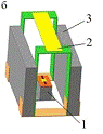 термічної обробки зразків (б): 1 - піч; 2 - алюмінієвій каркас; 3 - магніти