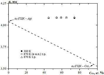 елементів. Фазовий склад: ГЦК-Ag++ГЩП-Со + т.р. (Ag, Co).