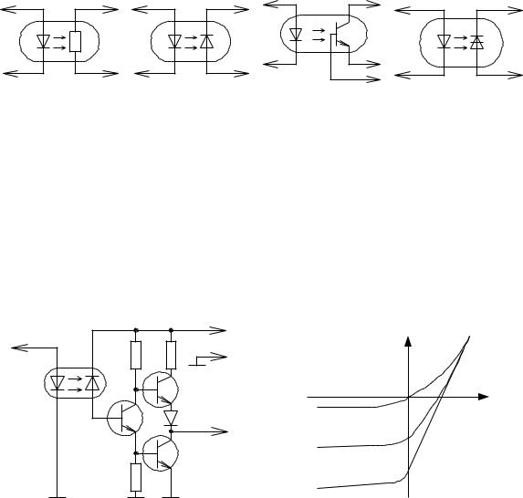 На рисунке 193 изображён резисторный оптрон, на 194 – диодный, на 195 – транзисторный и на рисунке 196, соответственно, динисторный.