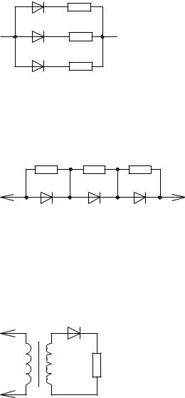Если напряжение в цепи превосходит максимально допустимое обратное напряжение диода, то в этом случае допускается последовательное включение диодов (смотрите рисунок 34).