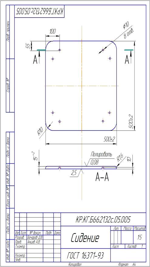 отверстия под чопики и ножки стула. Далее создаем чертеж с допусками и
