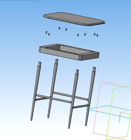 Мой стул с ножками состоит из 5 деталей: 2х ножек1, 2х ножек2, 4х поперечных, 1ой крепежной, 8 чопиков и сидения. Все эти детали изготовлены из дерева.